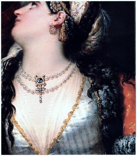 | Keywords: Monvoisin, Raymond - Ali Pacha y Vasiliki -1832 ost 345x272 PalCous frg3.2.jpg Artwork Creator Raymond Monvoisin Fragmento del cuadro El albanés musulmán Alí Pashá de Yánina fue el gobernante de los Balcanes cuando estos formaban Rumelia una provincia del imperio otomano; Kira Kyra Vasiliki una griega y cristiana era su esposa favorita 1832 oil on canvas cm 345 272 Institution Palacio Cousiño object history El cuadro fue expuesto por primera vez en el Salón de París de 1833 y estuvo entre la veintena de pinturas que Monvoisin se llevó consigo cuando zarpó hacia Chile credit line Varias variaciones que Monvoisin habría hecho sobre el tema de Alí Pacha y Vasiliki han aparecido en subastas accession number scan de Raimundo Monvoisin Origo Ediciones 2008 PD Ali Pasha Vassiliki 1832 <gallery>File Monvoisin Raymond - Ali Pacha y Vasiliki -1832 ost 345x272 PalCous 1 jpg File Monvoisin Raymond - Ali Pacha y Vasiliki -1832 ost 345x272 PalCous frg1 jpg File Monvoisin Raymond - Ali Pacha y Vasiliki -1832 ost 345x272 PalCous frg2 jpg</gallery> Other pictures of Ali Pasha Vassiliki attributed to Monvoisin<gallery>File Monvoisin Raymond - Ali Pacha et Vasiliki -wtrclor pencil 55x51 jpg File Monvoisin Raymond - Ali Pasha with his favourite mistress Lira Vassiliki -sothebys2015 jpg File Monvoisin Raymond - Ali Pacha et Vasiliki -Gros Delettrez2014 jpg</gallery> Custom license marker 2015 09 20 PD-old-100 Ali Pasha Raymond Quinsac Monvoisin 1832 paintings Paintings in the Palacio Cousiño |