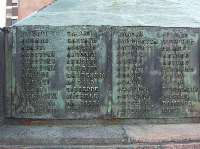 Keywords: Monza-caduti-prima-guerra-AB-AR.jpg it MB Monza monumento ai caduti lato A - elenco caduti della prima guerra mondiale AB - AR own Albertomos 2009-10-16 nessuna ABBIATI EMILIO ABRAMI GAETANO AGASTI AUGUSTO AGOSTONI ANTONIO AGOSTONI ERNESTO AGOSTONI GIUSEPPE AIROLDI GAUDENZIO ALBERTI ANGELO ALZATI GIUSEPPE AMBROGINI MICHELE ANDREONI BATTISTA ANDREONI GERARDO ANNONI ATTILIO ANTONIETTA GIUSEPPE ANTONIETTI PILADE APPIANI ARTURO ARBILI ARTURO ARLATI SERAFINO AROSIO MARIO AROSIO PIETRO ARRIGONI FERDINANDO ARTESANI ANGELO ARTESANI DOMENICO ARTESANI LUIGI ImageNote 1 135 208 706 720 1569 1171 2 ABBIATI EMILIO ABRAMI GAETANO AGASTI AUGUSTO AGOSTONI ANTONIO AGOSTONI ERNESTO AGOSTONI GIUSEPPE AIROLDI GAUDENZIO ALBERTI ANGELO ALZATI GIUSEPPE AMBROGINI MICHELE ANDREONI BATTISTA ANDREONI GERARDO ImageNoteEnd 1 ImageNote 2 902 214 651 702 1569 1171 2 ANNONI ATTILIO ANTONIETTA GIUSEPPE ANTONIETTI PILADE APPIANI ARTURO ARBILI ARTURO ARLATI SERAFINO AROSIO MARIO AROSIO PIETRO ARRIGONI FERDINANDO ARTESANI ANGELO ARTESANI DOMENICO ARTESANI LUIGI ImageNoteEnd 2 Caduti I guerra mondiale Monza - lato A |