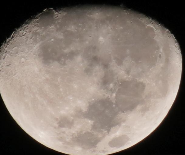 Keywords: Moon 140x.jpg en HDR photo of the moon made free hand with Canon SX 40 with digital zoom of 140x own Wurzelgnohm 2012-02-05 Cc-zero Taken with Canon PowerShot SX40 HS Photographs of the waxing gibbous moon