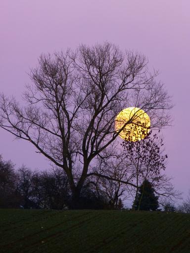 Keywords: moon full moon moonrise evening twilight moonlight tree skyline yellow atmosphere