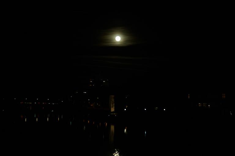 Keywords: moon moonlight full moon dark at night danube river water ulm stove bridge plural