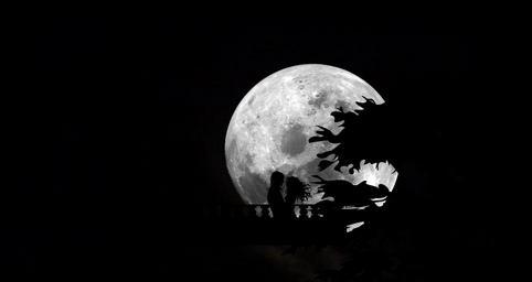 Keywords: moon night sky night moonlit night full moon nature astro landscape silhouette boyfriends unmarried couple tree bridge