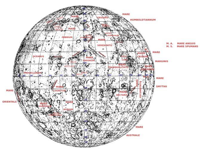Keywords: Moon-objects-near side.svg en Derivation work from map of the Moon in Andrees Allgemeiner Handatlas 1st Edition Leipzig Germany 1881 Page 4 Objects on near side of the Moon own H Seldon Maps of the Moon