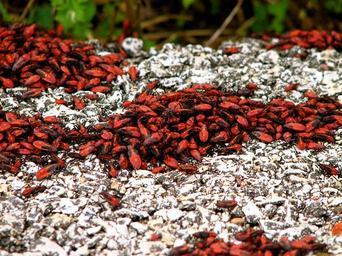 Keywords: More Devouring Red insects.JPG A larger pile of red devouring insects Pyrrhocoris apterus Own 2007-06-08 Scrumshus 70px 30px Red insects red and white