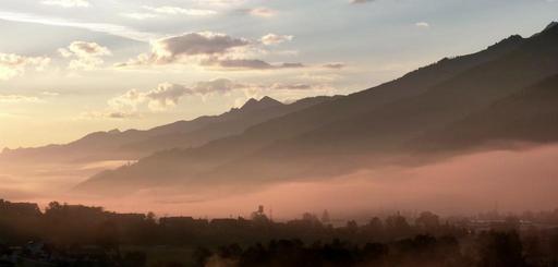 Keywords: morgenstimmung fog autumn mountains haze alpine village nature landscape morning light