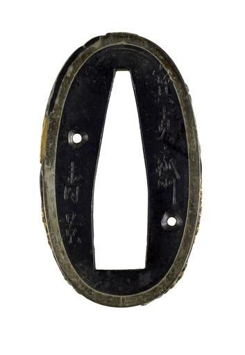 Keywords: Morikawa Toshikage - Fuchi with Cherry Tree in Bloom - Walters 5111982A - Mark A.jpg The fuchi is decorated with the trunk and branches of a cherry tree in full bloom The tree is made of black shakudo with the blossoms in gold and silver Cherry blossoms are a celebrated symbol of spring This is part of a mounted set 2nd half Other date century 19 late Edo-Meiji silver shakudo gold shibuichi cm 4 accession number 51 1198 2A 29005 Henry Walters Baltimore date and mode of acquisition unknown Walters Art Museum Henry Walters Acquired by Henry Walters Signature Hôshindai Toshikage place of origin Edo present-day Tokyo Japan Walters Art Museum license Fuchi in the Walters Art Museum Morikawa Toshikage Media contributed by the Walters Art Museum needs category review |