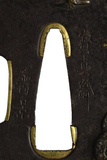 Keywords: Morikawa Toshikage - Tsuba with Stone Rabbit with a Blossoming Plum Branch - Walters 51371 - Mark A.jpg On the right of this tsuba is a stone rabbit with a branch of plum blossoms in its back Two birds fly over the central opening A stream is shown at the lower left Rabbits are one of the zodiac animals and often depicted in Japanese art On the reverse are a pine branch by a river and a full moon at the upper right 1864 late Edo iron gilt gold silver cm 6 8 accession number 51 371 20775 Henry Walters Baltimore date and mode of acquisition unknown Walters Art Museum Henry Walters Acquired by Henry Walters Signature Hôshinsai/Toshikage; Date Genji ki-no-e ne chûshû/ kao ; Translation Mid-autumn Genji year of the rat 1864 place of origin Edo present-day Tokyo Japan Walters Art Museum license Tosogu Japanese sword fittings in the Walters Art Museum Morikawa Toshikage Media contributed by the Walters Art Museum needs category review |