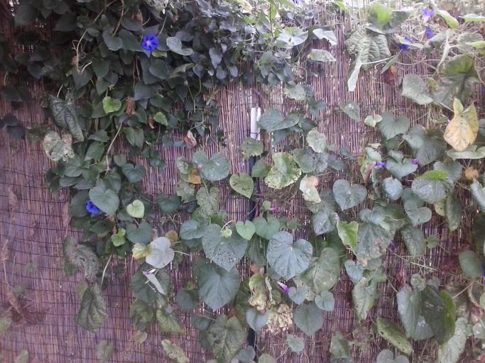 Keywords: Morning Glory Vines (Frederick, MD).jpg en Morning Glory vines climbing over a wall Mostly depicts the leaves 2013-10-08 13 44 39 own Zellfaze cc-zero Uploaded with UploadWizard Ipomoea purpurea Flowers of the United States