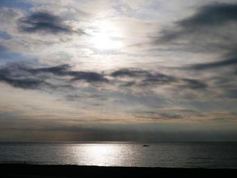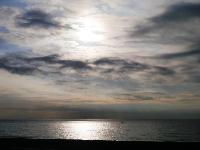 Keywords: morning sea light darkness gray black sun cloud sky fishing boat reflection sandy izu shizuoka prefecture peninsula ripples antomasako japan coast black and white ink wash ink