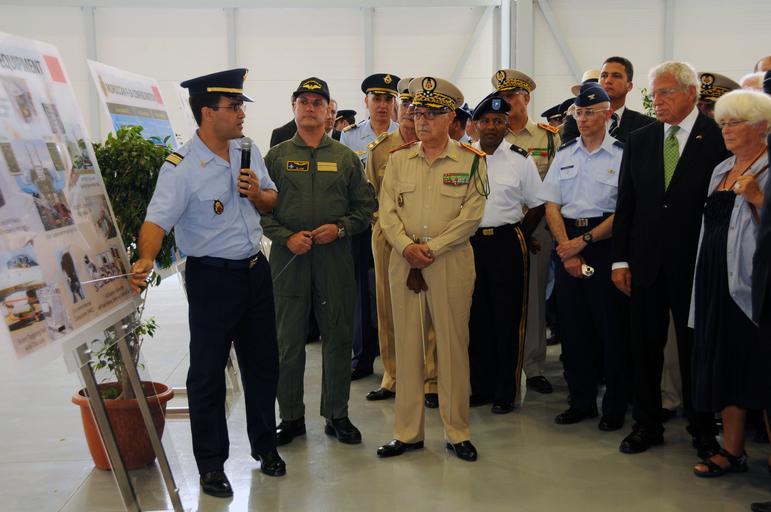 | Keywords: Moroccan military and American Ambassador Kaplan.jpg en U S and Moroccan members General Abdelaziz Bennani and American ambassador Samuel L Kaplan listen during a briefing on Block 52 F-16 Fighting Falcon capabilities during an aircraft delivery ceremony at Ben Guerrir Air Base Aug 4 2011 The Royal Moroccan Air Force unveiled the first four of 24 F-16 Fighting Falcons becoming the 25th country to ever receive the aircraft 2011-08-04 http //www af mil/shared/media/photodb/photos/110804-F-GR962-668 jpg U S Air Force Staff Sgt Stefanie Torres PD-USGov Uploaded with UploadWizard Military of Morocco Generals of Morocco Ambassadors of the United States to Morocco |