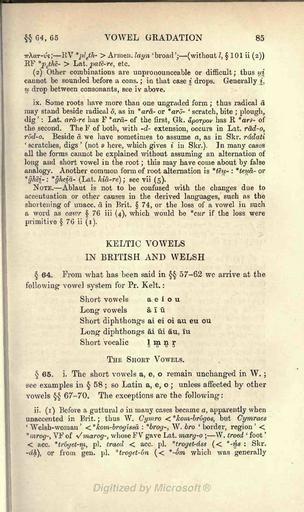 | Keywords: Morris-Jones Welsh Grammar 0085.png A scan of the book A Welsh Grammar Historical and Comparative by John Morris-Jones Morris-Jones_Welsh_Grammar_ png 0084 0086 http //www archive org/details/welshgrammarhist00joneuoft 1913 John Morris-Jones 1864 “1929 Author died more than 70 years ago - public domain PD-old Welsh Grammar by John Morris-Jones |