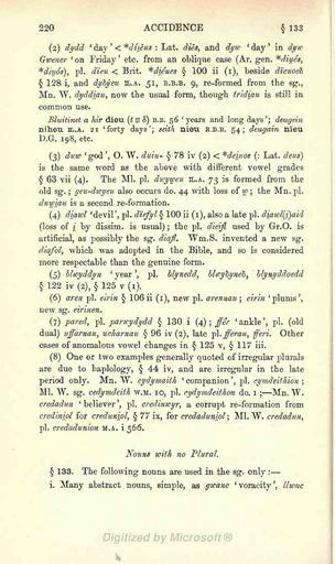 | Keywords: Morris-Jones Welsh Grammar 0220.png A scan of the book A Welsh Grammar Historical and Comparative by John Morris-Jones Morris-Jones_Welsh_Grammar_ png 0219 0221 http //www archive org/details/welshgrammarhist00joneuoft 1913 John Morris-Jones 1864 “1929 Author died more than 70 years ago - public domain PD-old Welsh Grammar by John Morris-Jones |