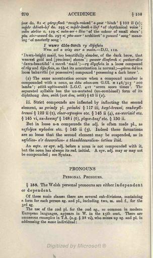 | Keywords: Morris-Jones Welsh Grammar 0270.png A scan of the book A Welsh Grammar Historical and Comparative by John Morris-Jones Morris-Jones_Welsh_Grammar_ png 0269 0271 http //www archive org/details/welshgrammarhist00joneuoft 1913 John Morris-Jones 1864 “1929 Author died more than 70 years ago - public domain PD-old Welsh Grammar by John Morris-Jones |