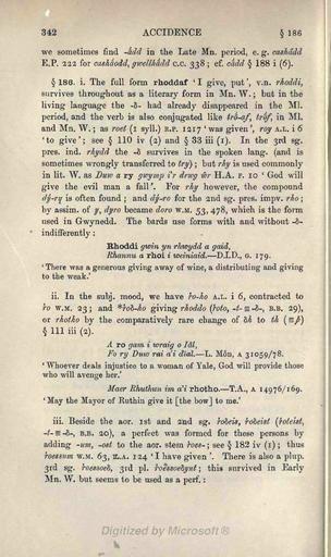 Keywords: Morris-Jones Welsh Grammar 0342.png A scan of the book A Welsh Grammar Historical and Comparative by John Morris-Jones Morris-Jones_Welsh_Grammar_ png 0341 0343 http //www archive org/details/welshgrammarhist00joneuoft 1913 John Morris-Jones 1864 “1929 Author died more than 70 years ago - public domain PD-old Welsh Grammar by John Morris-Jones |