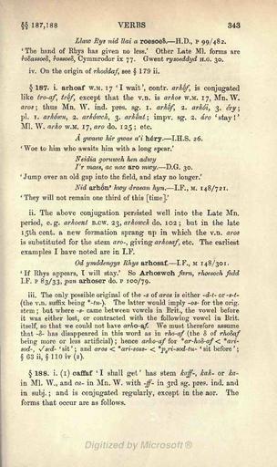 Keywords: Morris-Jones Welsh Grammar 0343.png A scan of the book A Welsh Grammar Historical and Comparative by John Morris-Jones Morris-Jones_Welsh_Grammar_ png 0342 0344 http //www archive org/details/welshgrammarhist00joneuoft 1913 John Morris-Jones 1864 “1929 Author died more than 70 years ago - public domain PD-old Welsh Grammar by John Morris-Jones
