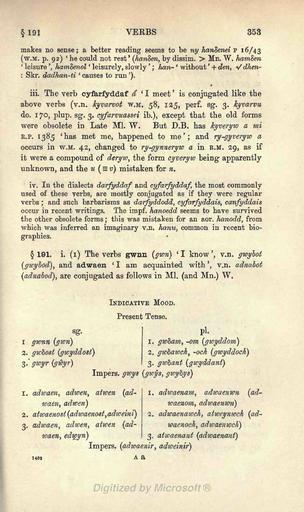 Keywords: Morris-Jones Welsh Grammar 0353.png A scan of the book A Welsh Grammar Historical and Comparative by John Morris-Jones Morris-Jones_Welsh_Grammar_ png 0352 0354 http //www archive org/details/welshgrammarhist00joneuoft 1913 John Morris-Jones 1864 “1929 Author died more than 70 years ago - public domain PD-old Welsh Grammar by John Morris-Jones |