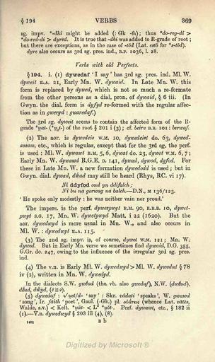 Keywords: Morris-Jones Welsh Grammar 0369.png A scan of the book A Welsh Grammar Historical and Comparative by John Morris-Jones Morris-Jones_Welsh_Grammar_ png 0368 0370 http //www archive org/details/welshgrammarhist00joneuoft 1913 John Morris-Jones 1864 “1929 Author died more than 70 years ago - public domain PD-old Welsh Grammar by John Morris-Jones |