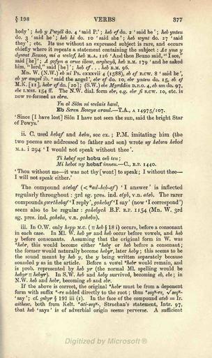 Keywords: Morris-Jones Welsh Grammar 0377.png A scan of the book A Welsh Grammar Historical and Comparative by John Morris-Jones Morris-Jones_Welsh_Grammar_ png 0376 0378 http //www archive org/details/welshgrammarhist00joneuoft 1913 John Morris-Jones 1864 “1929 Author died more than 70 years ago - public domain PD-old Welsh Grammar by John Morris-Jones |