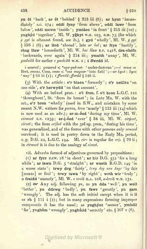 Keywords: Morris-Jones Welsh Grammar 0438.png A scan of the book A Welsh Grammar Historical and Comparative by John Morris-Jones Morris-Jones_Welsh_Grammar_ png 0437 0439 http //www archive org/details/welshgrammarhist00joneuoft 1913 John Morris-Jones 1864 “1929 Author died more than 70 years ago - public domain PD-old Welsh Grammar by John Morris-Jones |