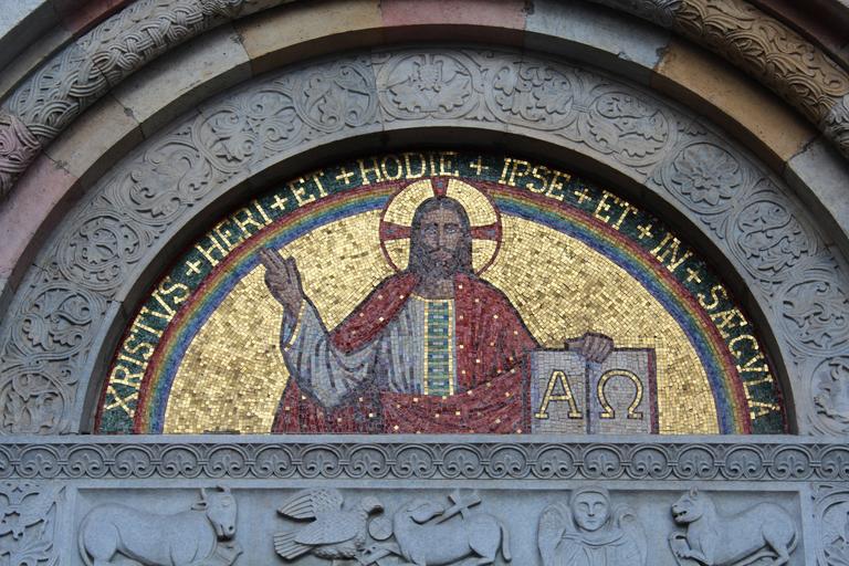 Keywords: mosaic jesus christ religion christianity catholic church church of san babila alpha and omega symbols evangelists art milan lombardy italy