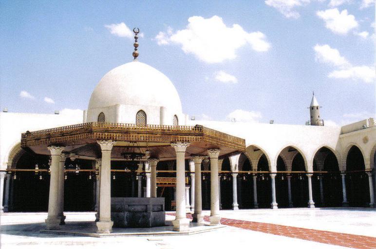 Keywords: Mosque of Amr Interior.jpg The interior of the Mosque of Amr ibn al-As in Cairo Egypt Own 2005-06 Jeff Dahl Amr Ibn al-Aas Mosque Cairo Islamic pavilions Mosque courtyards Islamic domes Pavilions