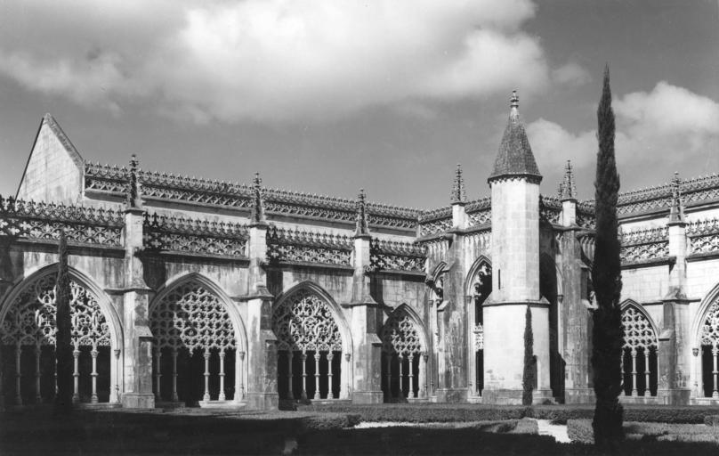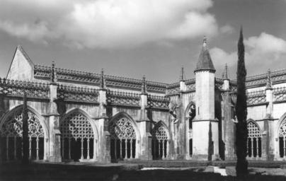 Keywords: arquitectura gótico portugal batalha mosteiro santa vitória fundação calouste gulbenkian fundaçãocaloustegulbenkian maria pia mariapia mário tavares chicó máriotavareschicó mário novais márionovais gótica biblioteca de arte bibliotecadearte Claustro real. Fotógrafo: Mário Novais, 1899-1967. Orientador científico: Mário Tavares Chicó, 1905-1966. Data aproximada da produção da fotografia original: 1954. O Mosteiro da Batalha é o mais importante símbolo da Dinastia de Avis. Ele foi construído por iniciativa de D. João I, na sequência de um voto à Virgem, caso vencesse a Batalha de Aljubarrota (1385). Ao longo do século XV, praticamente todos os monarcas aqui deixaram a sua marca. O arranque das obras deu-se em 1388 e foi conduzido por Afonso Domingues, que se manteve à frente do estaleiro até 1402, ano em que faleceu. A ele se atribui o plano geral da construção e o grande avanço dos trabalhos na igreja e no claustro. Não terá tido tempo de executar a fachada principal nem o abobadamento do templo, deixando igualmente inacabado o claustro. A magnífica igreja de três naves e transepto saliente por si delineada, com cabeceira de cinco capelas, sendo a central de duplo tramo e terminação poligonal, terá sido o ponto alto da sua carreira, mas revela bem o nível ainda algo arcaizante da arquitectura portuguesa de finais do século XIV, alheia aos progressos do Gótico Flamejante, que tanto iria marcar a segunda fase do monumento. Com efeito, a partir de 1402, a chefia do estaleiro foi entregue a Huguet, arquitecto de provável origem catalã que inaugurou, entre nós, o tardo-gótico. Documentado à frente do projecto até 1438, a ele se deve o abobadamento dos espaços da igreja e da Sala do Capítulo (onde experimentou, pela primeira vez, uma abóbada estrelada), a construção da Capela do Fundador e, ainda, o início das obras das Capelas Imperfeitas, bem como a conclusão da fachada principal, onde sobressai o portal axial. Este, é delimitado por um arco canopial que integra os escudos de D. João I e de D. Filipa. No tímpano, exibe-se Cristo em Majestade ladeado pelos Evangelistas e as arquivoltas são repletas de figurações que continuam pelas estátuas-colunas, ao abrigo de um complexo programa iconográfico. Mas a mais emblemática obra de Huguet é a Capela do Fundador. Ela foi concebida para panteão régio e sabemos que já se encontrava em obras em 1426. É um compartimento quadrangular que se adossa aos três tramos ocidentais da fachada lateral Sul e integra, ao centro, um esquema octogonal de suportes onde descarrega a abóbada estrelada, solução primeiro experimentada em Inglaterra, mas rapidamente difundida pela Europa. No circuito interior desta capela, colocou-se o túmulo duplo de D. João I e de D. Filipa, realização igualmente sem antecedentes no nosso país e que resulta de uma nítida influência da tumulária inglesa. Na capela repousam também os filhos do casal régio (como D. Henrique e o regente D. Pedro), de acordo com a decisão testamentária de D. João I em fazer deste espaço um efectivo panteão. Em 1436, D. Duarte decidiu edificar uma capela funerária para si próprio. O projecto então concebido por Huguet foi o mais arrojado da sua carreira na Batalha, privilegiando uma planta circular que, todavia, não viria a ser concluída pelo falecimento do mestre dois anos depois. Desta forma, e não obstante a intervenção de Mestre Martim Vasques, a construção cessou até ao reinado de D. Manuel e, mesmo nessa altura, não foi concluída, razão de esta parcela ser conhecida como as Capelas Imperfeitas. No reinado de D. Afonso V, edificou-se o segundo claustro do mosteiro. Ele resulta da intervenção do arquitecto Fernão de Évora e, estilisticamente, é uma obra que contraria o tardo-gótico de raiz flamejante, tendo-se optado deliberadamente pela austeridade arquitectónica, que rejeita até a inclusão de capitéis a marcar o arranque dos arcos. A Batalha teve outras fases construtivas igualmente relevantes, como o Manuelino ou o Renascimento. Todavia, a mudança dinástica verificada com D. Manuel privilegiou outros locais e, só no século XIX, o Mosteiro voltou a ser intervencionado, desta vez com o objectivo de restaurar o conjunto, campanha que se prolongou por meio século. (Fonte: IPPAR - tinyurl.com/5dmlfe) [CFT015.176.ic] Claustro real. Fotógrafo: Mário Novais, 1899-1967. Orientador científico: Mário Tavares Chicó, 1905-1966. Data aproximada da produção da fotografia original: 1954. O Mosteiro da Batalha é o mais importante símbolo da Dinastia de Avis. Ele foi construído por iniciativa de D. João I, na sequência de um voto à Virgem, caso vencesse a Batalha de Aljubarrota (1385). Ao longo do século XV, praticamente todos os monarcas aqui deixaram a sua marca. O arranque das obras deu-se em 1388 e foi conduzido por Afonso Domingues, que se manteve à frente do estaleiro até 1402, ano em que faleceu. A ele se atribui o plano geral da construção e o grande avanço dos trabalhos na igreja e no claustro. Não terá tido tempo de executar a fachada principal nem o abobadamento do templo, deixando igualmente inacabado o claustro. A magnífica igreja de três naves e transepto saliente por si delineada, com cabeceira de cinco capelas, sendo a central de duplo tramo e terminação poligonal, terá sido o ponto alto da sua carreira, mas revela bem o nível ainda algo arcaizante da arquitectura portuguesa de finais do século XIV, alheia aos progressos do Gótico Flamejante, que tanto iria marcar a segunda fase do monumento. Com efeito, a partir de 1402, a chefia do estaleiro foi entregue a Huguet, arquitecto de provável origem catalã que inaugurou, entre nós, o tardo-gótico. Documentado à frente do projecto até 1438, a ele se deve o abobadamento dos espaços da igreja e da Sala do Capítulo (onde experimentou, pela primeira vez, uma abóbada estrelada), a construção da Capela