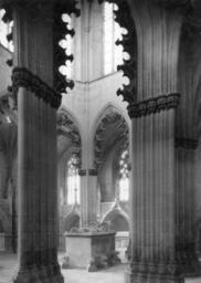 Keywords: arquitectura gótico portugal batalha mosteiro santa vitória fundação calouste gulbenkian fundaçãocaloustegulbenkian maria pia mariapia mário tavares chicó máriotavareschicó mário novais márionovais gótica biblioteca de arte bibliotecadearte Capela do Fundador. Fotógrafo: Mário Novais, 1899-1967. Orientador científico: Mário Tavares Chicó, 1905-1966. Data aproximada da produção da fotografia original: 1954. O Mosteiro da Batalha é o mais importante símbolo da Dinastia de Avis. Ele foi construído por iniciativa de D. João I, na sequência de um voto à Virgem, caso vencesse a Batalha de Aljubarrota (1385). Ao longo do século XV, praticamente todos os monarcas aqui deixaram a sua marca. O arranque das obras deu-se em 1388 e foi conduzido por Afonso Domingues, que se manteve à frente do estaleiro até 1402, ano em que faleceu. A ele se atribui o plano geral da construção e o grande avanço dos trabalhos na igreja e no claustro. Não terá tido tempo de executar a fachada principal nem o abobadamento do templo, deixando igualmente inacabado o claustro. A magnífica igreja de três naves e transepto saliente por si delineada, com cabeceira de cinco capelas, sendo a central de duplo tramo e terminação poligonal, terá sido o ponto alto da sua carreira, mas revela bem o nível ainda algo arcaizante da arquitectura portuguesa de finais do século XIV, alheia aos progressos do Gótico Flamejante, que tanto iria marcar a segunda fase do monumento. Com efeito, a partir de 1402, a chefia do estaleiro foi entregue a Huguet, arquitecto de provável origem catalã que inaugurou, entre nós, o tardo-gótico. Documentado à frente do projecto até 1438, a ele se deve o abobadamento dos espaços da igreja e da Sala do Capítulo (onde experimentou, pela primeira vez, uma abóbada estrelada), a construção da Capela do Fundador e, ainda, o início das obras das Capelas Imperfeitas, bem como a conclusão da fachada principal, onde sobressai o portal axial. Este, é delimitado por um arco canopial que integra os escudos de D. João I e de D. Filipa. No tímpano, exibe-se Cristo em Majestade ladeado pelos Evangelistas e as arquivoltas são repletas de figurações que continuam pelas estátuas-colunas, ao abrigo de um complexo programa iconográfico. Mas a mais emblemática obra de Huguet é a Capela do Fundador. Ela foi concebida para panteão régio e sabemos que já se encontrava em obras em 1426. É um compartimento quadrangular que se adossa aos três tramos ocidentais da fachada lateral Sul e integra, ao centro, um esquema octogonal de suportes onde descarrega a abóbada estrelada, solução primeiro experimentada em Inglaterra, mas rapidamente difundida pela Europa. No circuito interior desta capela, colocou-se o túmulo duplo de D. João I e de D. Filipa, realização igualmente sem antecedentes no nosso país e que resulta de uma nítida influência da tumulária inglesa. Na capela repousam também os filhos do casal régio (como D. Henrique e o regente D. Pedro), de acordo com a decisão testamentária de D. João I em fazer deste espaço um efectivo panteão. Em 1436, D. Duarte decidiu edificar uma capela funerária para si próprio. O projecto então concebido por Huguet foi o mais arrojado da sua carreira na Batalha, privilegiando uma planta circular que, todavia, não viria a ser concluída pelo falecimento do mestre dois anos depois. Desta forma, e não obstante a intervenção de Mestre Martim Vasques, a construção cessou até ao reinado de D. Manuel e, mesmo nessa altura, não foi concluída, razão de esta parcela ser conhecida como as Capelas Imperfeitas. No reinado de D. Afonso V, edificou-se o segundo claustro do mosteiro. Ele resulta da intervenção do arquitecto Fernão de Évora e, estilisticamente, é uma obra que contraria o tardo-gótico de raiz flamejante, tendo-se optado deliberadamente pela austeridade arquitectónica, que rejeita até a inclusão de capitéis a marcar o arranque dos arcos. A Batalha teve outras fases construtivas igualmente relevantes, como o Manuelino ou o Renascimento. Todavia, a mudança dinástica verificada com D. Manuel privilegiou outros locais e, só no século XIX, o Mosteiro voltou a ser intervencionado, desta vez com o objectivo de restaurar o conjunto, campanha que se prolongou por meio século. (Fonte: IPPAR - tinyurl.com/5dmlfe) [CFT015.170.ic] Capela do Fundador. Fotógrafo: Mário Novais, 1899-1967. Orientador científico: Mário Tavares Chicó, 1905-1966. Data aproximada da produção da fotografia original: 1954. O Mosteiro da Batalha é o mais importante símbolo da Dinastia de Avis. Ele foi construído por iniciativa de D. João I, na sequência de um voto à Virgem, caso vencesse a Batalha de Aljubarrota (1385). Ao longo do século XV, praticamente todos os monarcas aqui deixaram a sua marca. O arranque das obras deu-se em 1388 e foi conduzido por Afonso Domingues, que se manteve à frente do estaleiro até 1402, ano em que faleceu. A ele se atribui o plano geral da construção e o grande avanço dos trabalhos na igreja e no claustro. Não terá tido tempo de executar a fachada principal nem o abobadamento do templo, deixando igualmente inacabado o claustro. A magnífica igreja de três naves e transepto saliente por si delineada, com cabeceira de cinco capelas, sendo a central de duplo tramo e terminação poligonal, terá sido o ponto alto da sua carreira, mas revela bem o nível ainda algo arcaizante da arquitectura portuguesa de finais do século XIV, alheia aos progressos do Gótico Flamejante, que tanto iria marcar a segunda fase do monumento. Com efeito, a partir de 1402, a chefia do estaleiro foi entregue a Huguet, arquitecto de provável origem catalã que inaugurou, entre nós, o tardo-gótico. Documentado à frente do projecto até 1438, a ele se deve o abobadamento dos espaços da igreja e da Sala do Capítulo (onde experimentou, pela primeira vez, uma abóbada estrelada), a construção