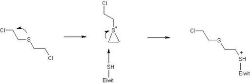 Keywords: Mosterdgas2.gif mosterdgas met een eiwit own Lbaltuss 2009-03-31 Sulfur mustard Chemical reactions