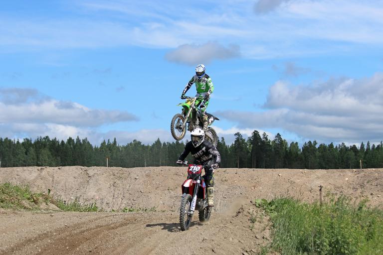 Keywords: motocross motorcycle offroad motorbike race competetion racing drivers jump flying road bicyclist bicycle riding adventure