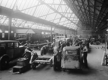 Keywords: motor factory automobile production industrial machine engine warehouse 1934