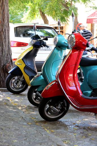 Keywords: motor scooter park flitzer retro roller cult locomotion motorcycles vehicle series red vintage blue yellow