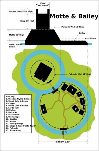Keywords: Motte & Bailey.svg en An illustration of a Motte Bailey Castle The Keep is loosely based on Rochester and Hedingham 2013-02-17 07 32 47 own Lordoftheloch cc-zero Uploaded with UploadWizard Motte and bailey