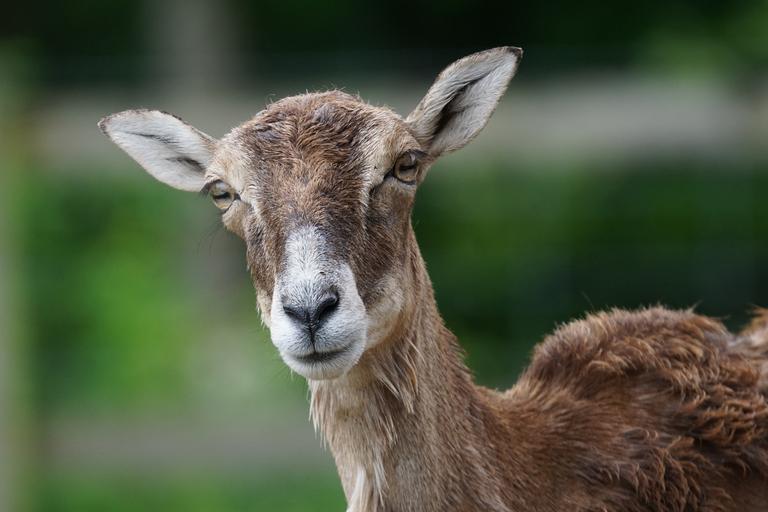 Keywords: mouflon female mammal animal portrait attention curious ovis musimon gmelini