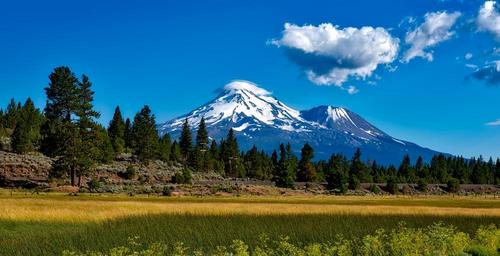 Keywords: mount shasta california volcano hdr snow sky clouds panorama meadow field pastoral landscape scenic forest trees woods nature outdoors destinations beautiful countryside