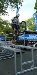 Keywords: Mountain bike stunt cyclist Chris Clark does a wheelie on ramps.jpg en Stunt cyclist Chris Clark can jump his bike on to a one-story tall trailer and down again using wheelies and other jumps 2012-08-07 own Tomwsulcer cc-zero Consent Uploaded with UploadWizard Stunt Bike Summit New Jersey Cycling in New Jersey |