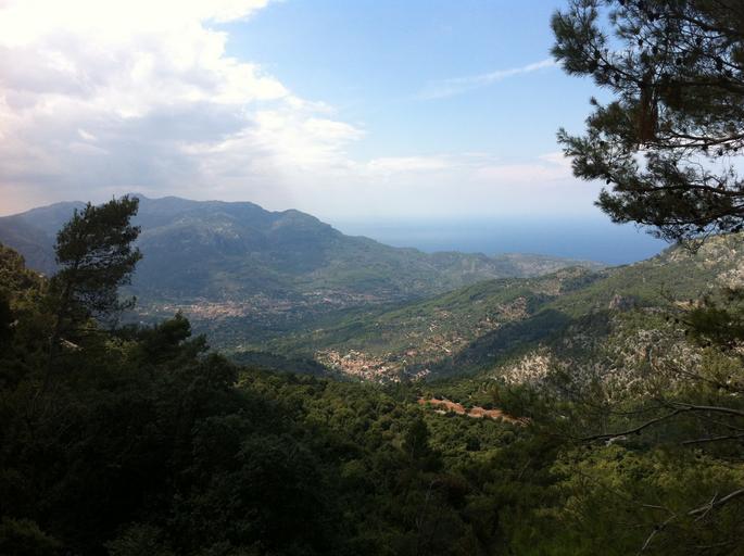 Keywords: mountain forest trees woods nature green mallorca spain tranquil hill sky outdoor meadow valley idyllic scenery scenic environment