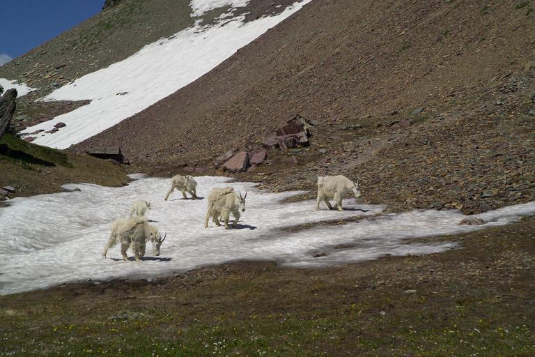 MAKE A MEME View Large Image David Restivo, NPS A group of mountain goats near Mt. Clements at Logan Pass. Photo: David Restivo, NPS