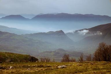 Keywords: mountain landscape clouds nature green vista cloudy horizon the apennines blue sky excursion stones summit
