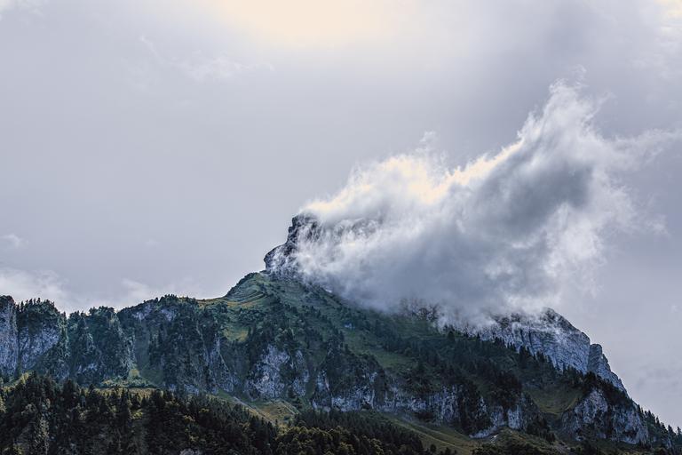 Keywords: mountain with cloud swaths mountain cloud alpine mood forest light atmosphere great landscape nature stone sky summit