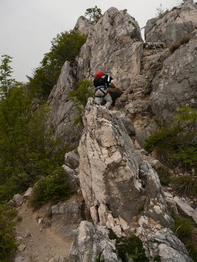 Keywords: mountaineer wanderer man person hiking climbing equipment senter dei bech cima capi garda italy