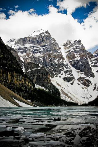 Keywords: mountains canada peaks ice snow landscape scenic rocky alberta sky water blue moraine lake clouds rugged scene wet outdoors range