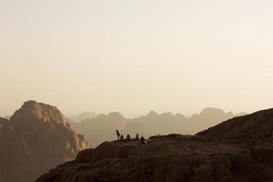Keywords: mountains dawn rocks tourists climbers