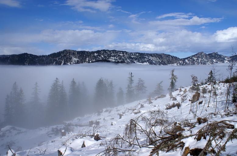 Keywords: mountains fog forest snow berchtesgaden alpine clouds