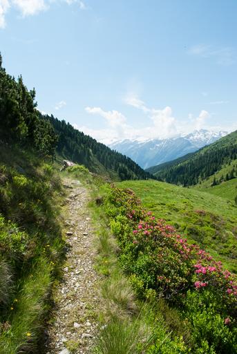 Keywords: mountains hiking nature landscape alpine mountain hiking alpine flowers almrausch alpine roses trail