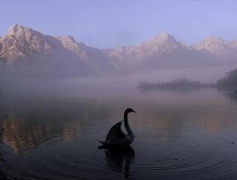 Keywords: mountains lake water swan landscape austria mirroring sunrise fog morgenstimmung atmosphere mystical nature morning light