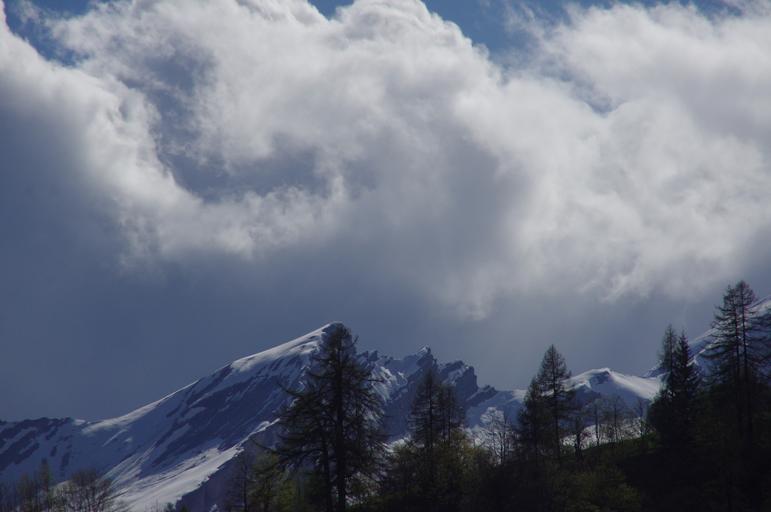 Keywords: mountains snow forward clouds sky dramatic