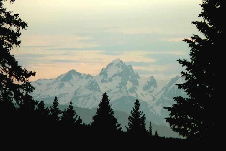Keywords: mountains snow trees silhouette snowy cold winter seasons rocky hills rocks landscape scenic scenery wild forest plants peaks
