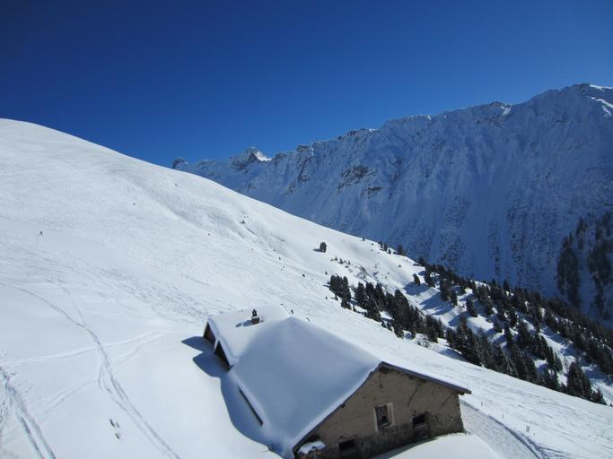 Keywords: mountains snow winter landscape house