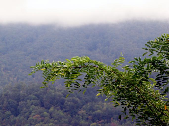 Keywords: mountains trees leaves landscape green nature environment flora stems branches plants hills scenic scenery foliage