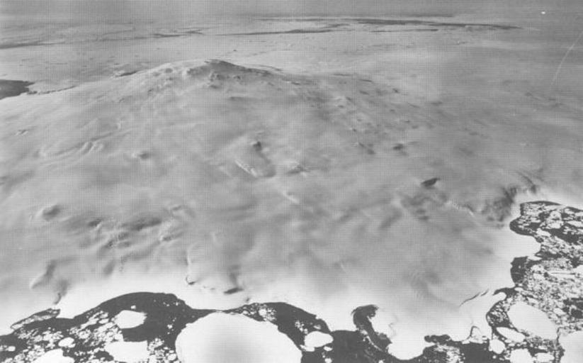 | Keywords: MountSipleUSNavy1985.jpg Mount Siple is a massive shield volcano which rises to 3110 m and forms the high point of Siple Island in Marie Byrd Land off the coast of Antarctica This aerial view is from the west with dark-colored open water in the foreground and pack-ice-filled Pankratz Bay at the far right http //www volcano si edu/world/volcano cfm vnum 1900-025 1985 U S Navy photo TMA 1627 F33 088 PD-USGov-Military-Navy Mount Siple Siple Island Aerial photographs of Antarctica | ||||
